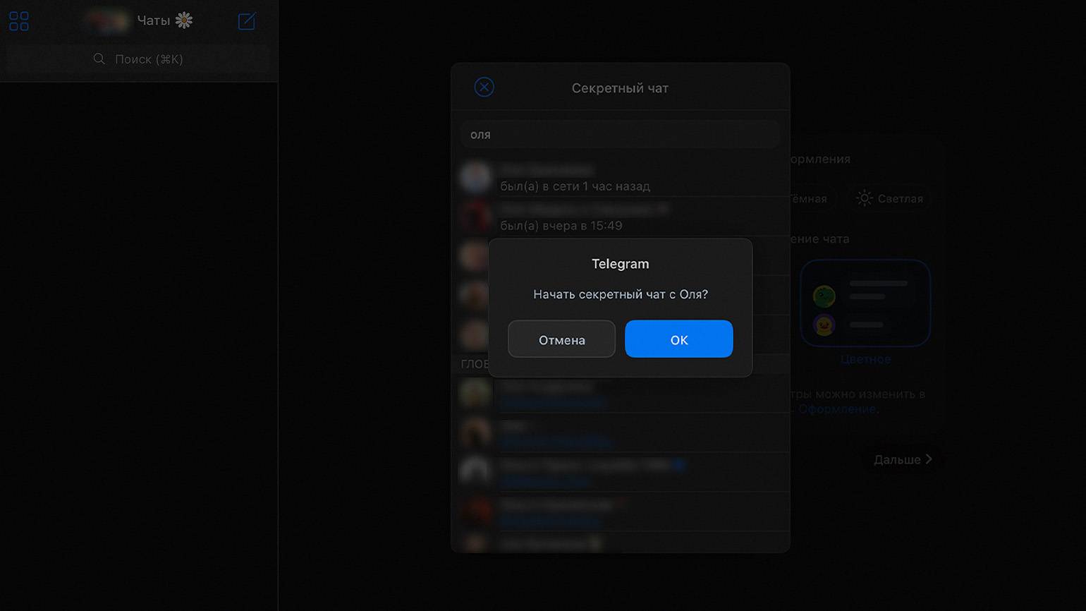 На момент выпуска статьи секретный чат можно создать только на смартфонах и на MacBook. На ПК с Windows сделать это нельзя ни в приложении, ни в веб-версии. Мы покажем, как создать и удалить секретный чат, на примере iPhone и MacBook. На устройствах с Android логика такая же.