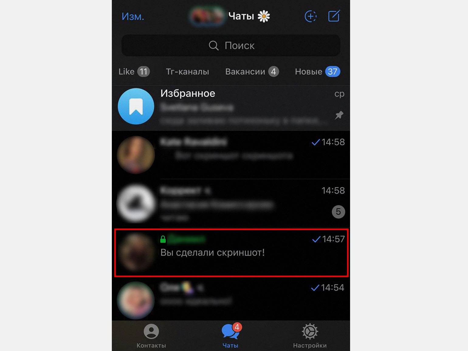 Нельзя делать скриншоты. Если вы попробуете сделать скриншот секретного чата или запись экрана, ваш собеседник получит уведомление об этом. На устройствах с iOS на скриншоте или записи экрана будет просто пустой диалог, а устройство на Android скриншот вообще не сделает.